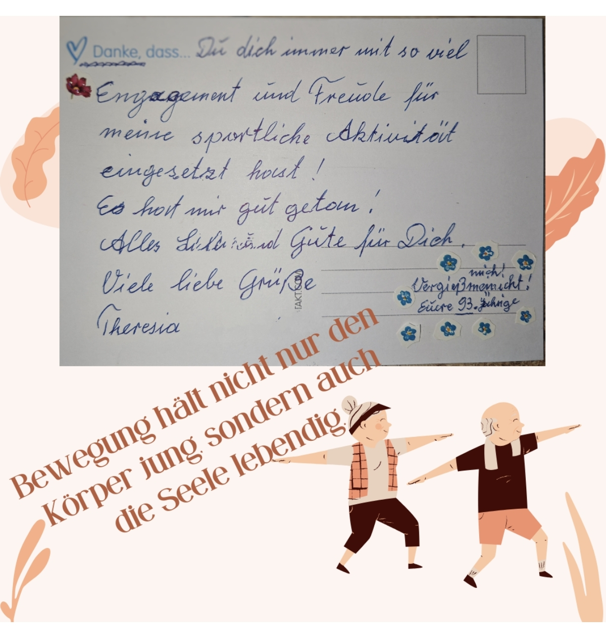 - Neben dem gemeinsamen Sporttreiben ist der Austausch mit anderen ein wichtiges Element.